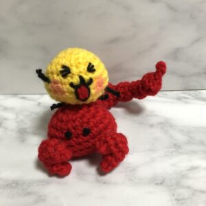 編みやすくて何年もリピートで使っているアクリル毛糸の補充で、エッグイエローとレッドを買ってきました。
