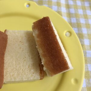 でも、食感はカステラのふわふわした感じで、味と香りは完全に北海道チーズ蒸しケーキでした。