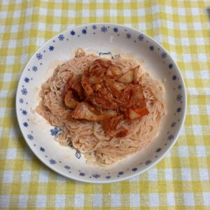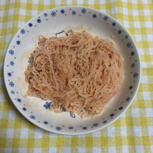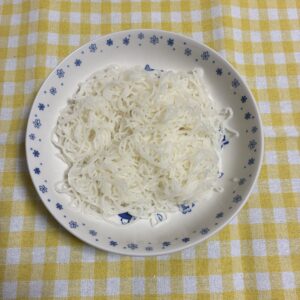 水切りして麺をお皿に出すとこんな感じで、けっこうボリュームがあることに驚きました。