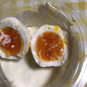 卵を割ってみると、とろとろの半熟でめちゃくちゃ美味しそうな茹で具合になっていました。
