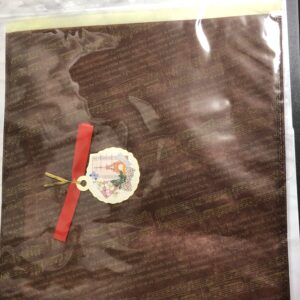 楽譜の柄とシックなブラウンがオシャレで、年齢が高めの方へのプレゼントを包むのにも合いそうです。