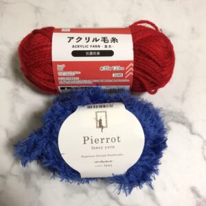 ダイソーではミャクミャクさんの体のような鮮やかなブルーが売っていなかったので、家にあった毛糸の中で色が近かったので使ってみました。