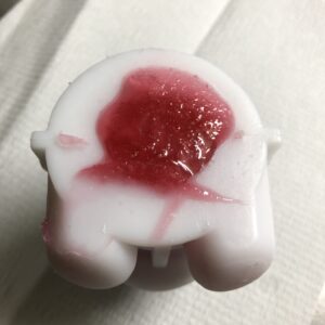これはスイカバーの素で作ってみたときなんですが、出すときに細かなところが崩れて首も折れてしまいました。