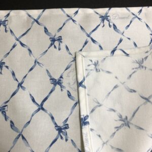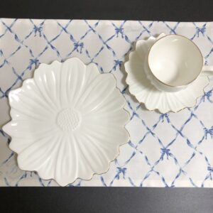 ランチョンマットとセットで使うと同化してしまいますが、白とブルーの色合いが夏にぴったりで沢山使えそうです。