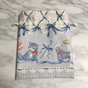 猫ちゃんとリボン柄の生地がとっても可愛いので、また何か作りたいです🎶
