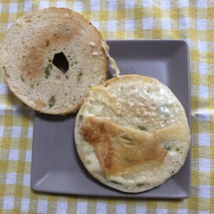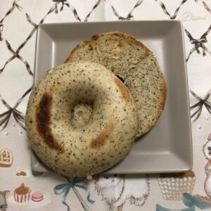 解凍してからトースターで焼くことで、表面がパリッとして中はもちっとしたベーグルを存分に楽しむことができます。