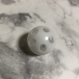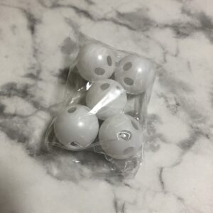 ラトルに入れる鈴はこんな感じでプラスチックの球体の中に、さらに鈴が入っている作りになっています。