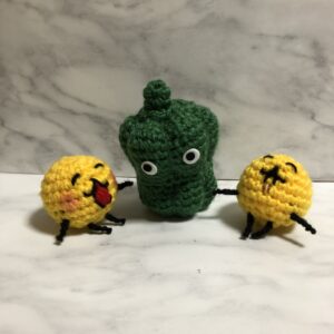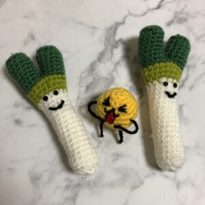 ネギは前にも編んだのですが、なぜかちびっこ人気があるらしくて追加を頼まれて編みました。