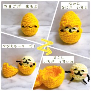 編み方は、編みぐるみ作家みさきちさんを参考にさせていただきました。