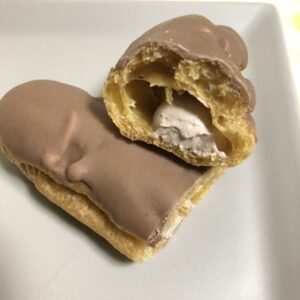 ルマンドのようなココアチョコレートでコーティングされたエクレアは、なんともお上品な佇まいでした。