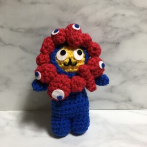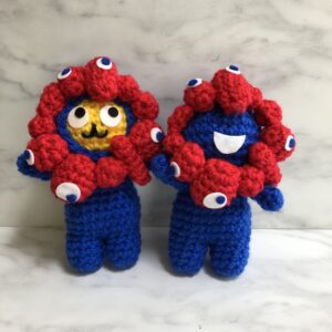 普通にミャクミャクを作っても良かったんですが、普通のミャクミャクは編んだことがあったので着ぐるみ風にしてみました。