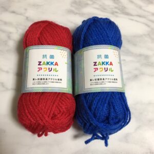 そんなわけで、使用した毛糸はZAKKAアクリルの5番の赤色と7番の青色です。