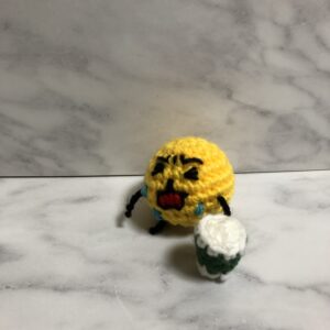 昨日の子と一緒に真顔になるところを撮りたくて、真顔おばけの子を編みました🎶