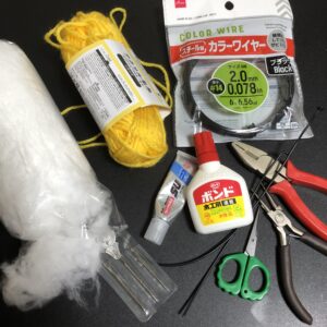 手足にワイヤーを使ったため、道具が編み物というより工作になりました(笑)