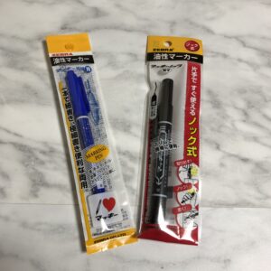 よく使うのはマッキー極細の青と、ノック式マッキー黒です。