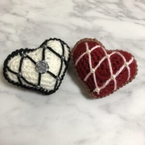 最近、こういうハートのタルトの編み方を覚えたので、クリスマスオーナメントらしくキラキラさせるパーツとして使います🎶