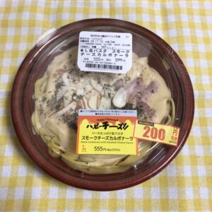 今日は食べてみたかったハッピーチーズフェアの、スモークチーズカルボナーラを200円引きで手に入れることができました✨