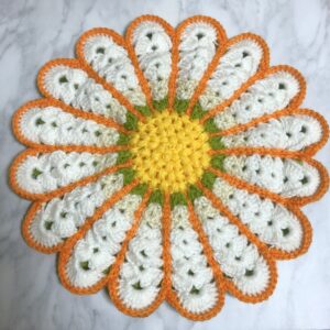 そんなわけでマーガレットの円座を作ったので、使った毛糸や完成サイズをご覧くださいませ。