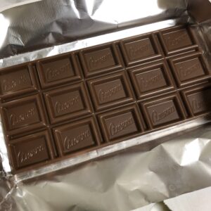 開けてみると銀紙も一緒にベリっとめくれていく感じで、チョコレートの裏面がどーんと登場しました。