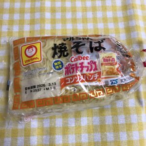 というわけで、カルビーポテトチップス コンソメパンチ味のマルちゃん焼きそばです。